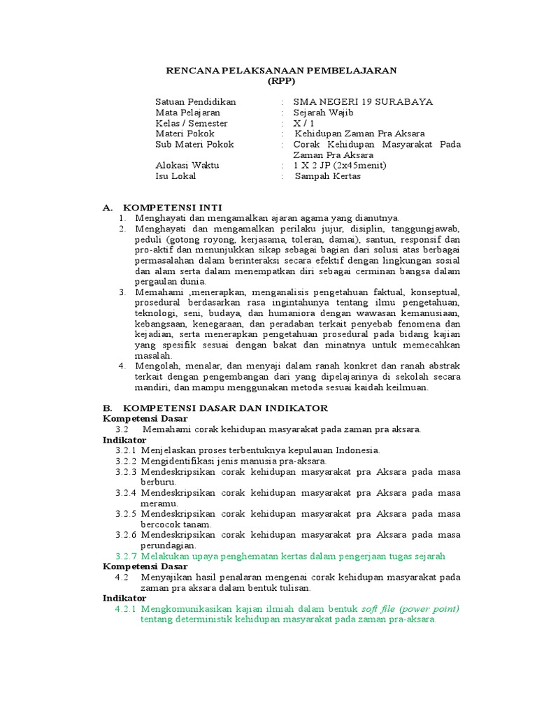Rpp 1 Lembar Sejarah Indonesia Kelas 12 Sma Ma Semester 1 Antapedia Com from 1.bp.blogspot.com Silabus sma sejarah wajib kelas x. Berikut ini adalah rpp sejarah indonesia untuk smk kelas x semester 1 dan 2 berdasarkan kurikulum 2013, sudah dibuat dengan format word sehingga mudah untuk diedit sesuai kebutuhan, silakan download , jangan lupa nama sekolah ~ kumpulan rpp dan bahan ajar sejarah indonesia 2013. Kehidupan masyarakat zaman pra aksara alokasi waktu :15 menit rencana pelaksanaan pembelajaran (rpp). Rencana pelaksanaan pembelajaran , atau disingkat rpp, adalah pegangan seorang guru dalam mengajar di dalam kelas. Tiga komponen inti rpp 1 lembar terdiri dari Rpp sejarah indonesia kelas 11 kurikulum 2013 revisi 2017 menurut beberapa pakar menjelaskan pentingnya penguasaan 4c sebagai silahkan download rpp sejarah indonesia sma kelas xi k13 revisi 2017 semester 1 dan semester 2 dengan mengklik beberapa tautan yang. 2.5.1 menunjukkan perilaku jujur dan tanggung jawab. Rpp sejarah indo kelas x :
